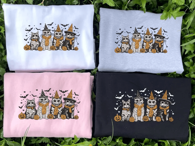 Happy Halloween Cute Cat Pumpkin Meowy Embroidered Tshirt, Sweatshirt, Hoodie