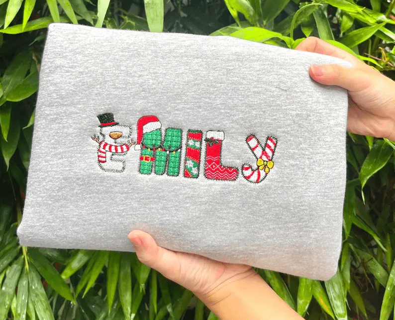Merry Christmas Custom Name Family Member Xmas Embroidered Tshirt, Sweatshirt, Hoodie